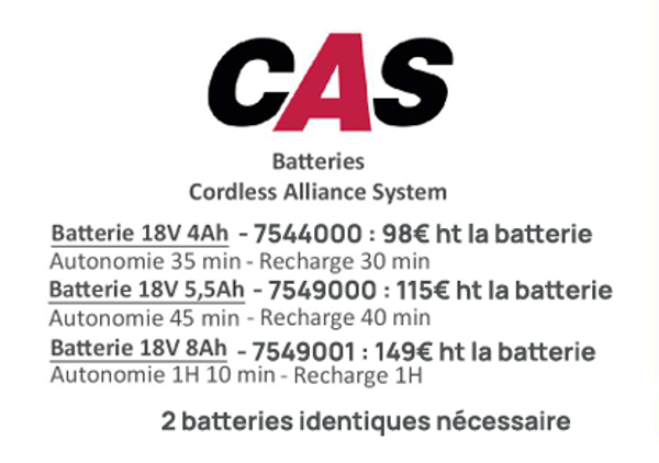 - Alimentation 2 batteries Lithium 18V 5,5Ah